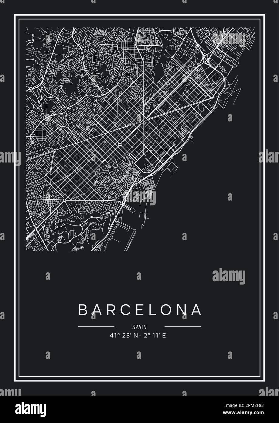 Black And White Printable Barcelona City Map Poster Design