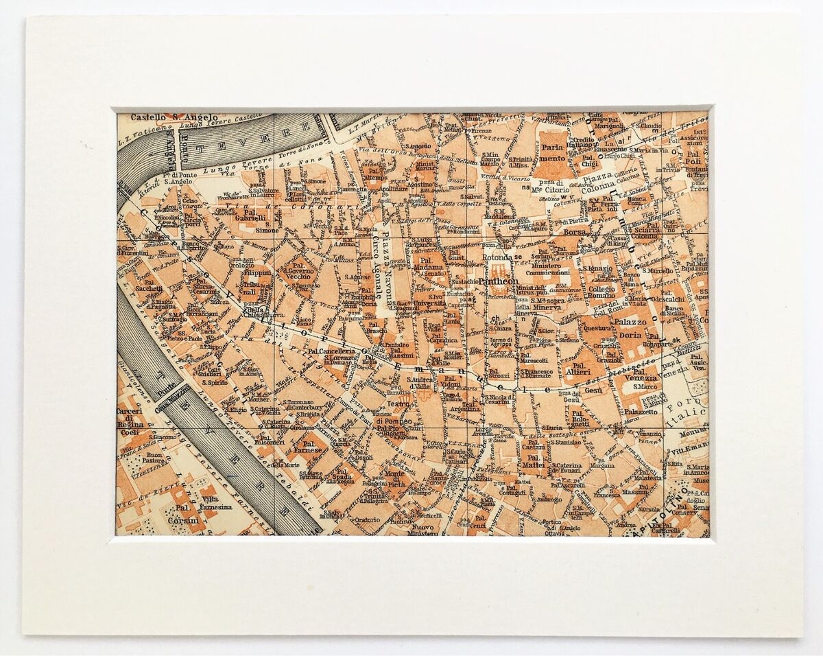 ROME ITALY City Street Plan 1926 Mounted Antique Map EBay
