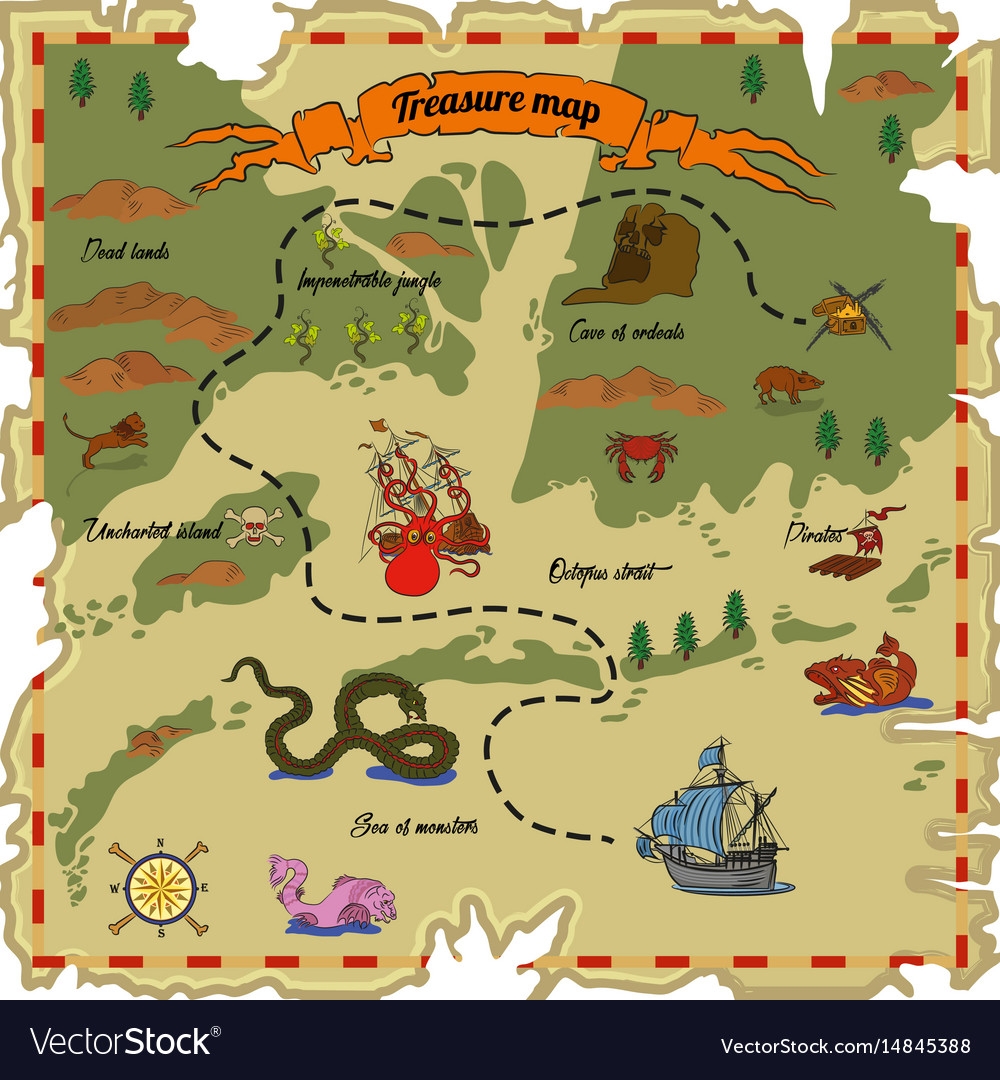 Treasure Map Template Aged Paper With Pirate Island Isolated On White Background Royalty Free SVG Cliparts Vectors And Stock Illustration Image 184881016