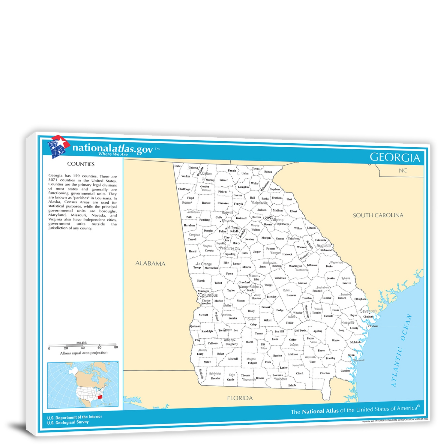 Georgia National Atlas Counties And Selected Cities Map 2022 Canvas Wrap