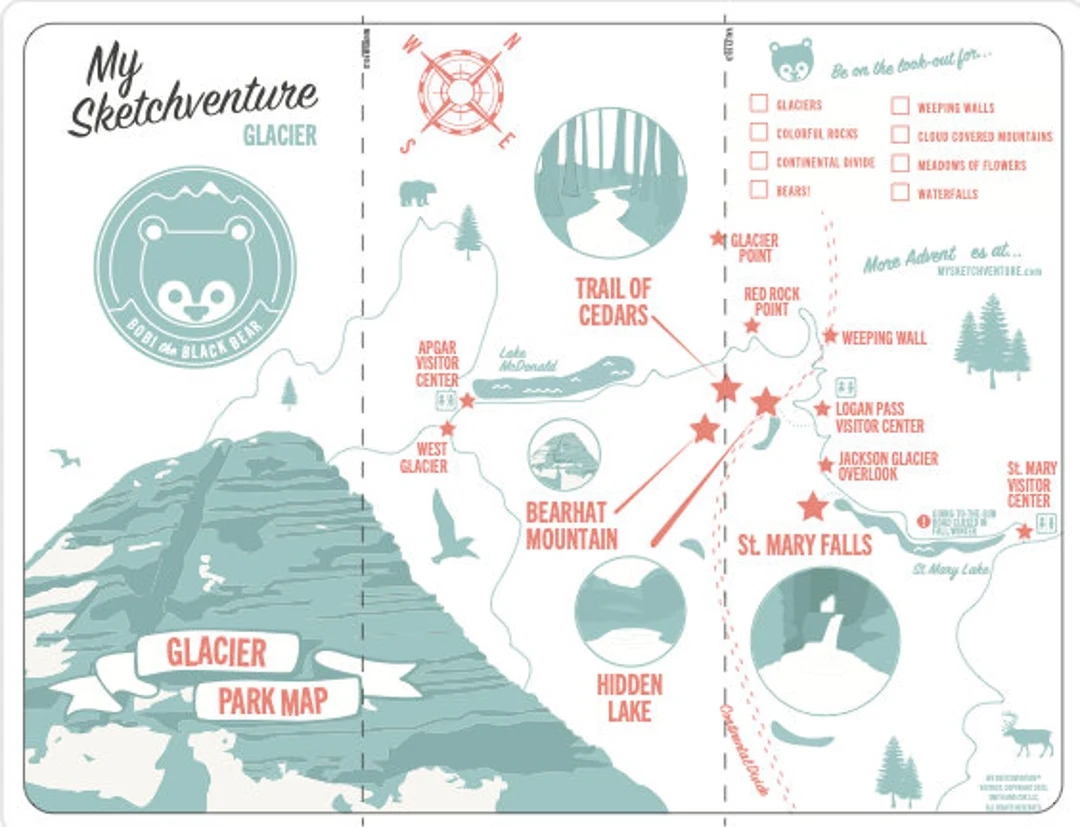 Printable GLACIER National Park Map Print And Fold Great For Kids 5 12 For Basic Overview Of Key Areas Of Interest Etsy