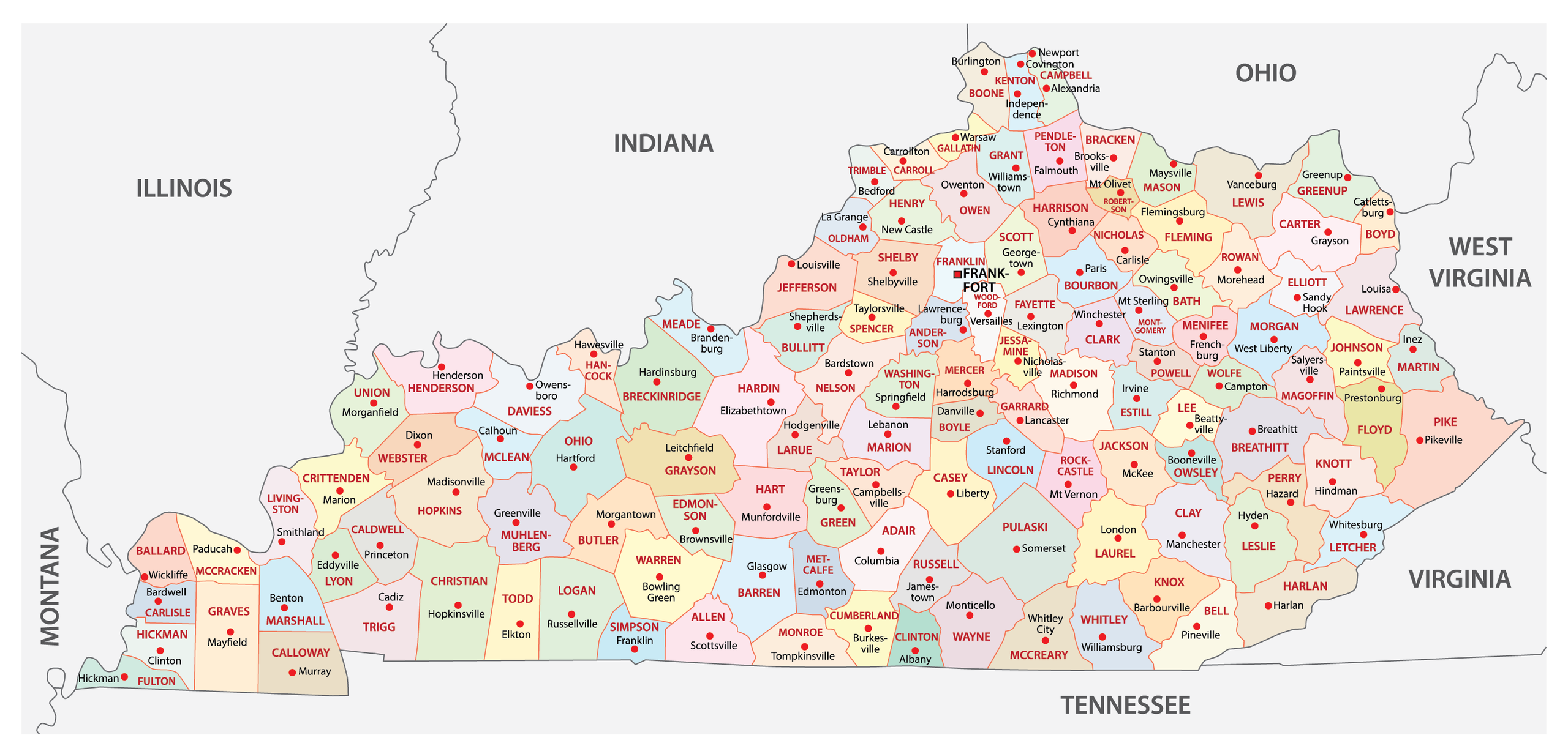 Kentucky County Map Map Of Kentucky Counties And Cities