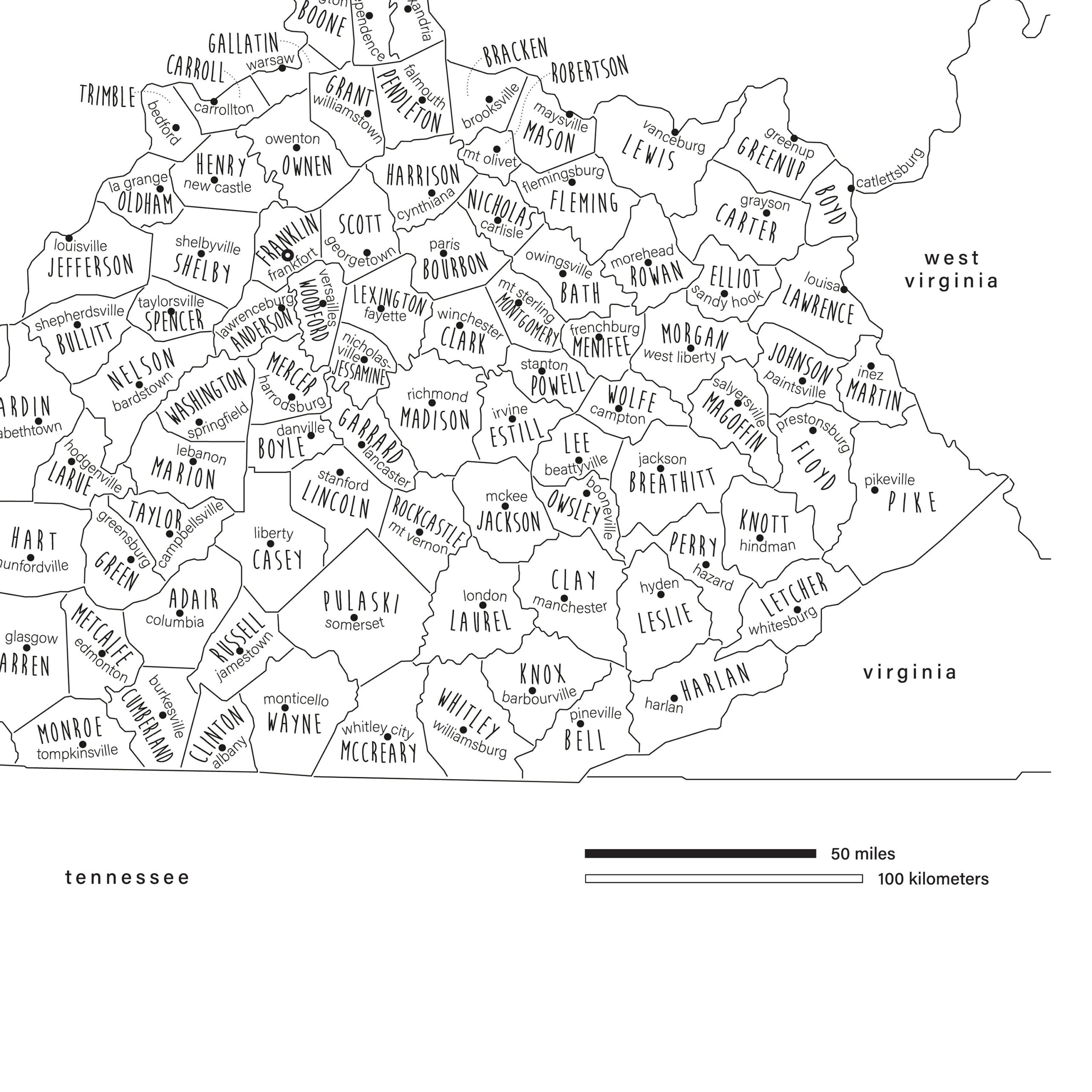 Kentucky County Map Printable