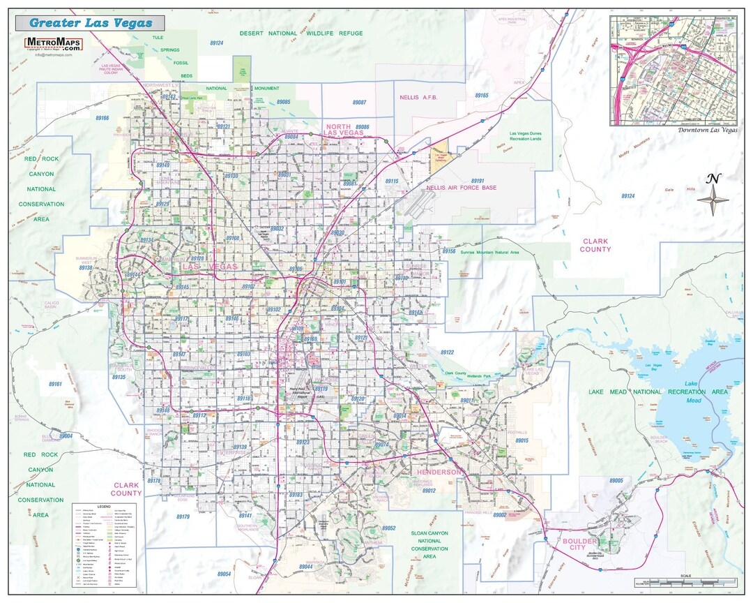 Greater Las Vegas NV Detailed Region Wall Map W zip Codes 2 Large Sizes Etsy
