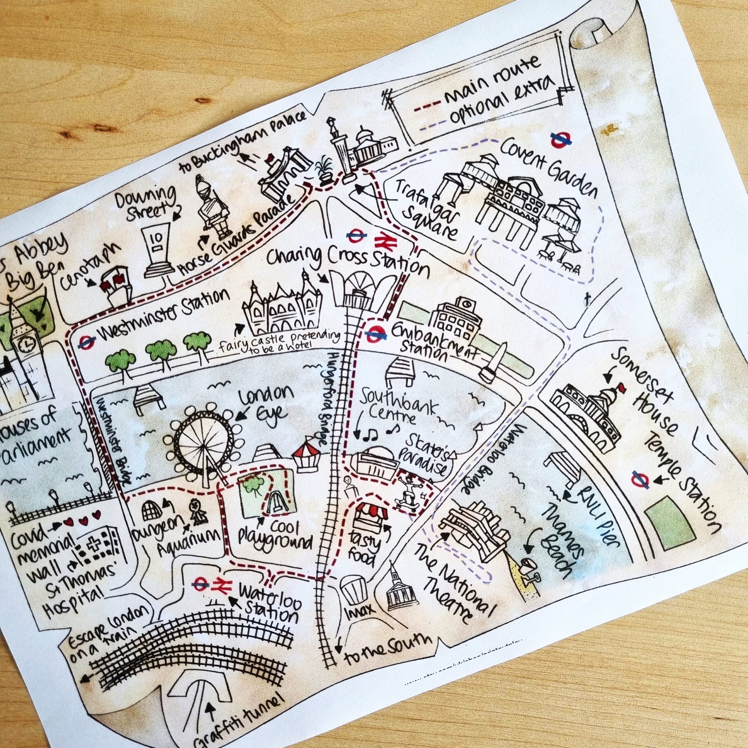 London Map For Children Walking Route Southbank London Eye Big Ben Trafalgar Square Covent Garden PDF Printable Instant Download Etsy UK