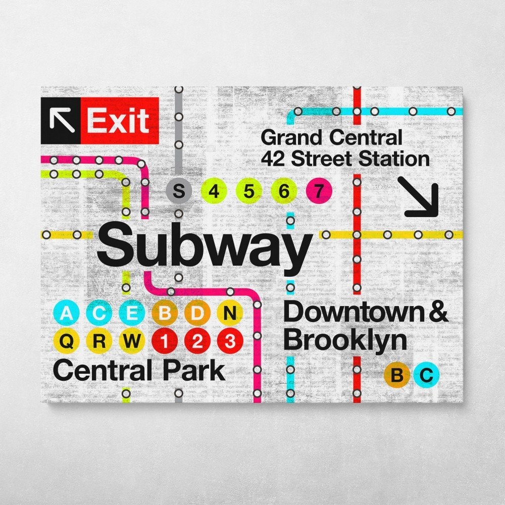 Retro Subway Map NYC Subway Sign Pop Art Wall Art Canvas Wall Art