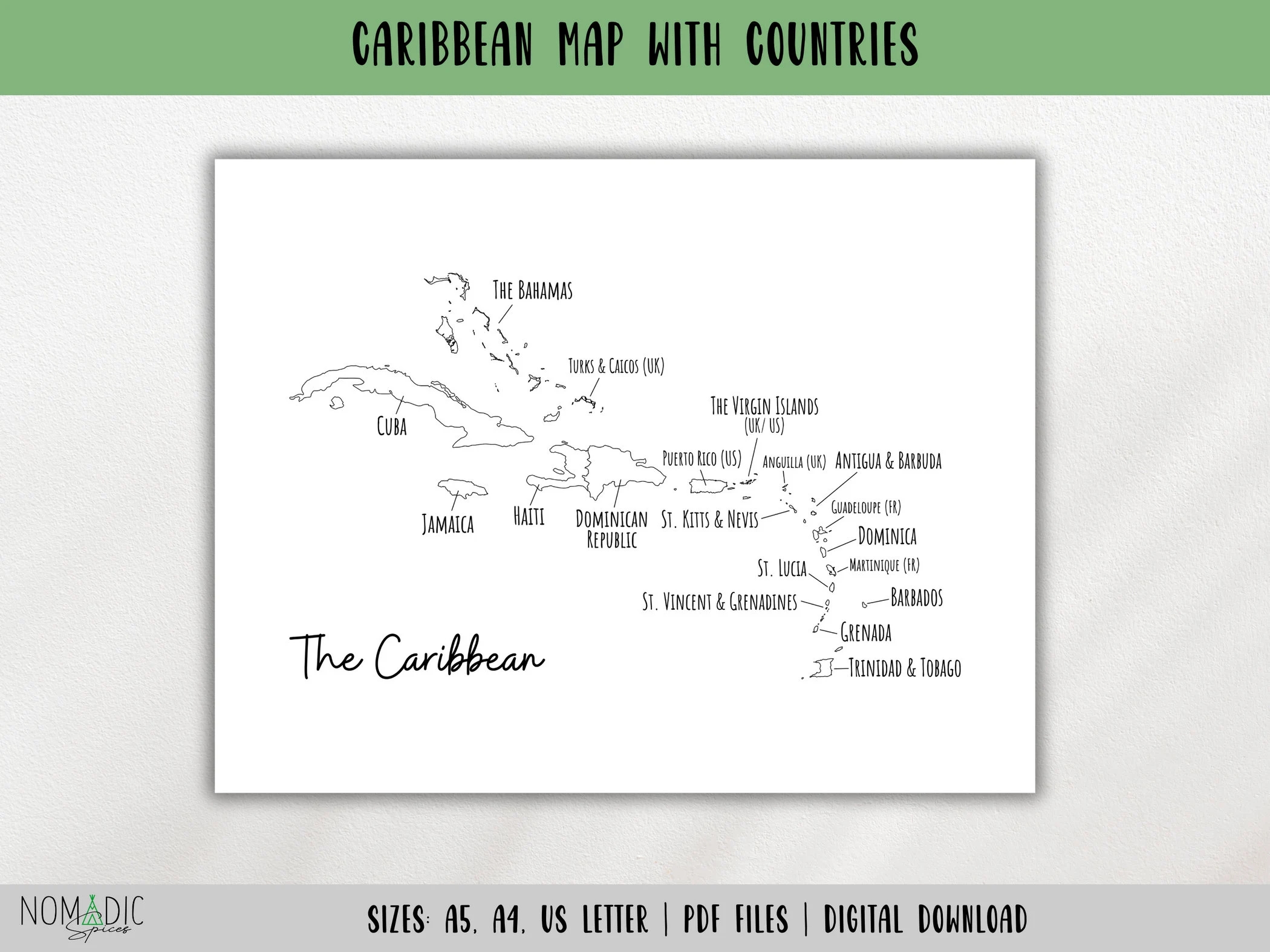 Caribbean Islands Map caribbean Map With Countries caribbean Islands Travel Tracker travel Planner Page Pdf learning Map DIGITAL DOWNLOAD Etsy
