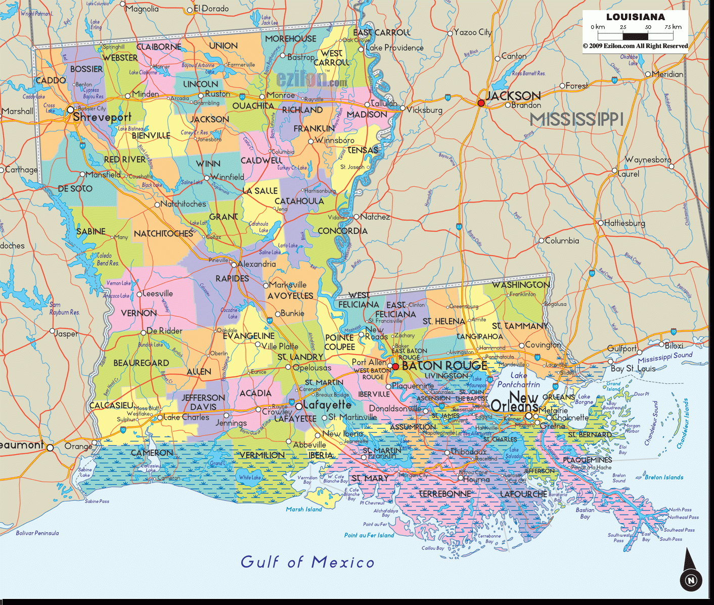 Detailed Map Of Louisiana State USA Ezilon Maps