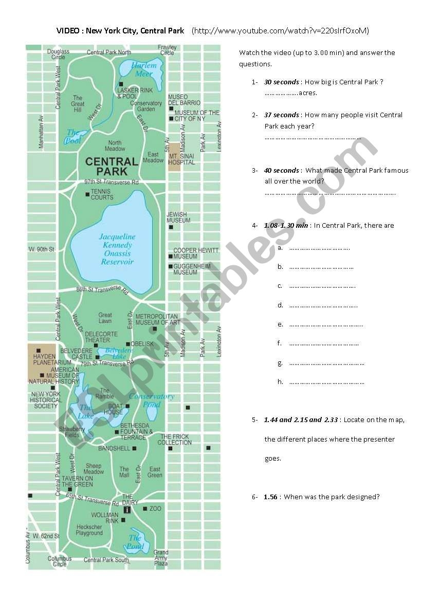 VIDEO NEW YORK CITY Central Park ESL Worksheet By Krokette