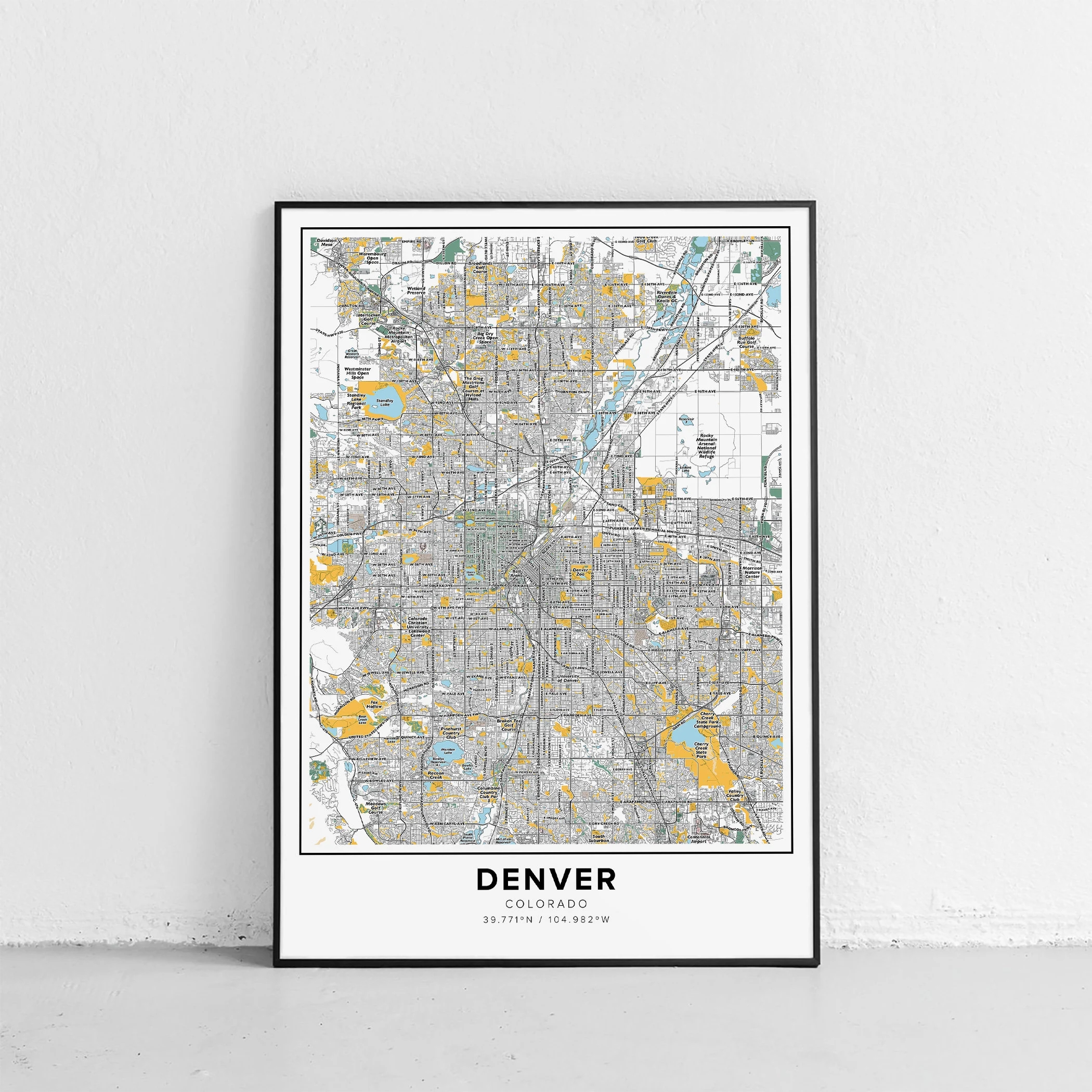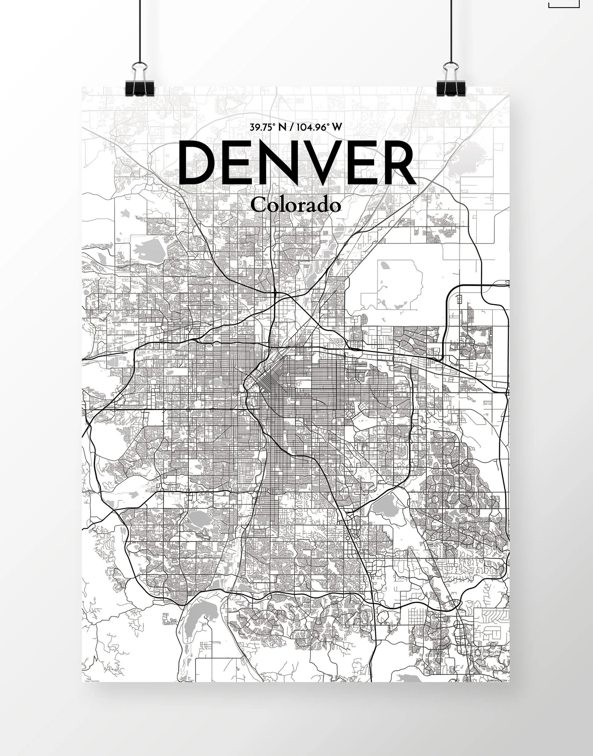 Denver Map Print Denver Map Art Colorado Print City Maps Map Print Map Art Print Black And White Map Wall Art Map Art Modern City Art Scandinavian