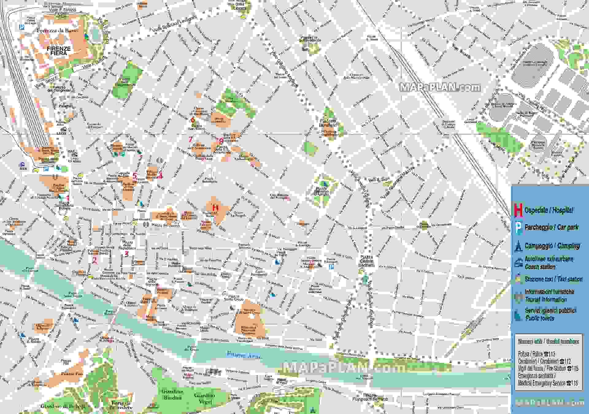 Florence Map Of Things To Do Tourist Information Visitor Centre Car Parks Hospitals Public Toilets SMN Rail U0026 Coach Station