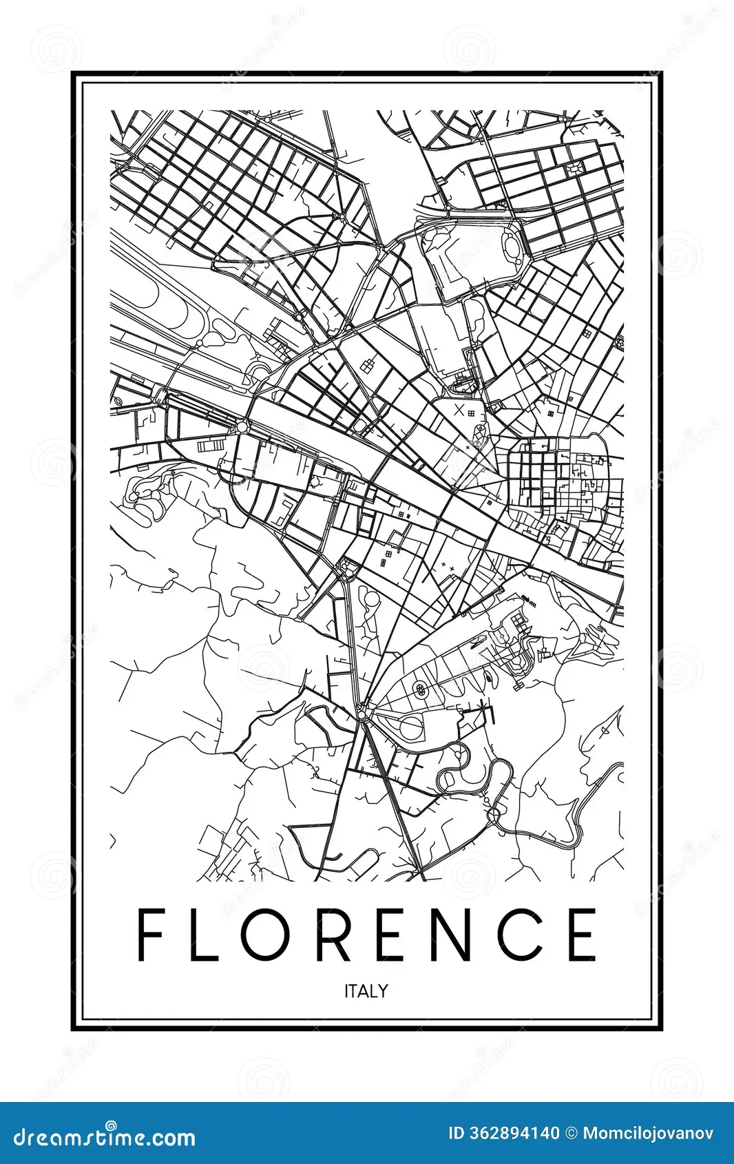 Poster Print Road Map Of The Italian City Of FLORENCE Stock Vector Illustration Of Italy Landmark 362894140