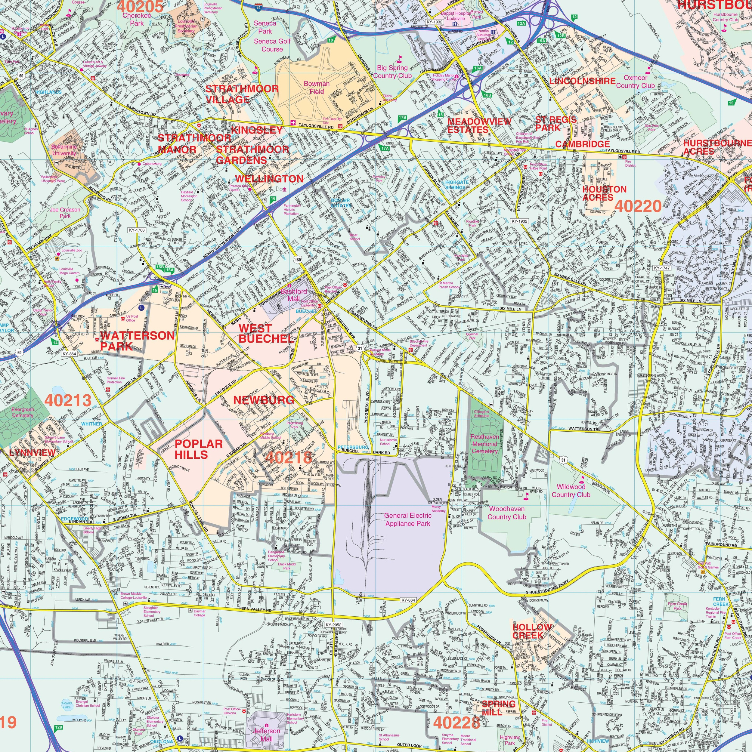 Louisville U0026 Jefferson County KY Wall Map By Kappa The Map Shop Worksheets Library
