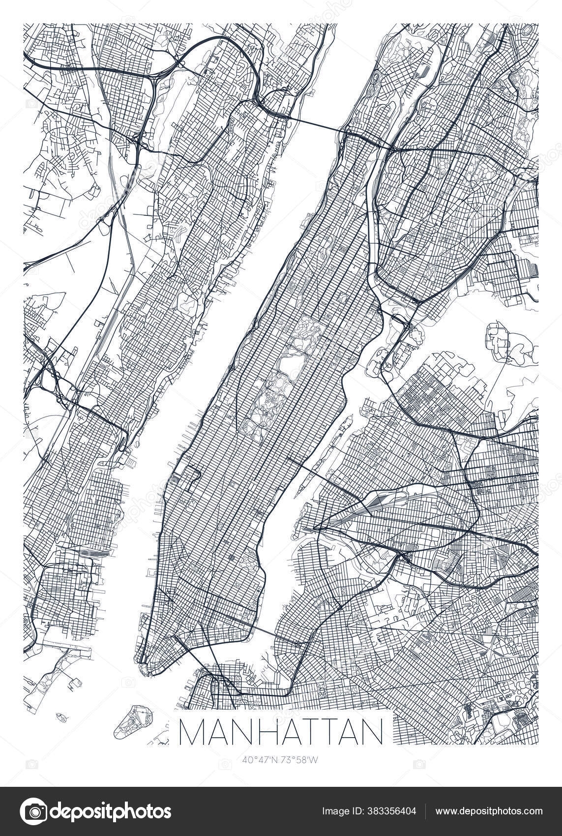 Detailed Borough Map Manhattan New York City Vector Poster Postcard Stock Vector By Max 776 383356404