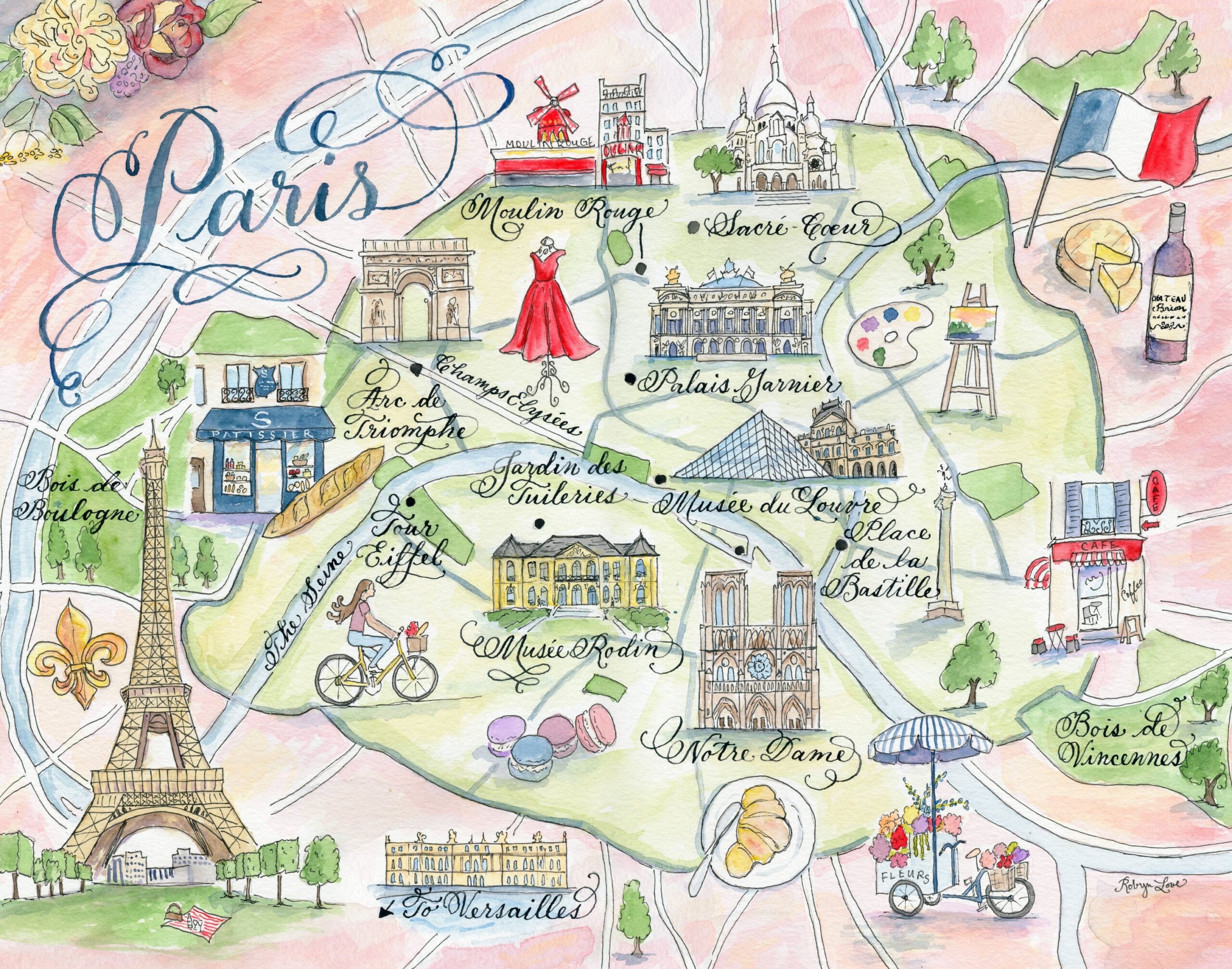 Paris France Map Hand painted Watercolor Luxury Print In 5 X 7 8 X 10 11 X 14 16 X 20 Or 18 X 24 For Framing Etsy