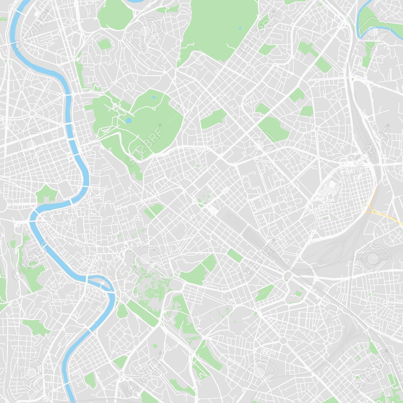Downtown Vector Map Of Rome Italy This Printable Map Of Rome Contains Lines And Classic Colored Shapes For Land Mass Parks Water Major And Minor Roads As Such As Major Rail Tracks