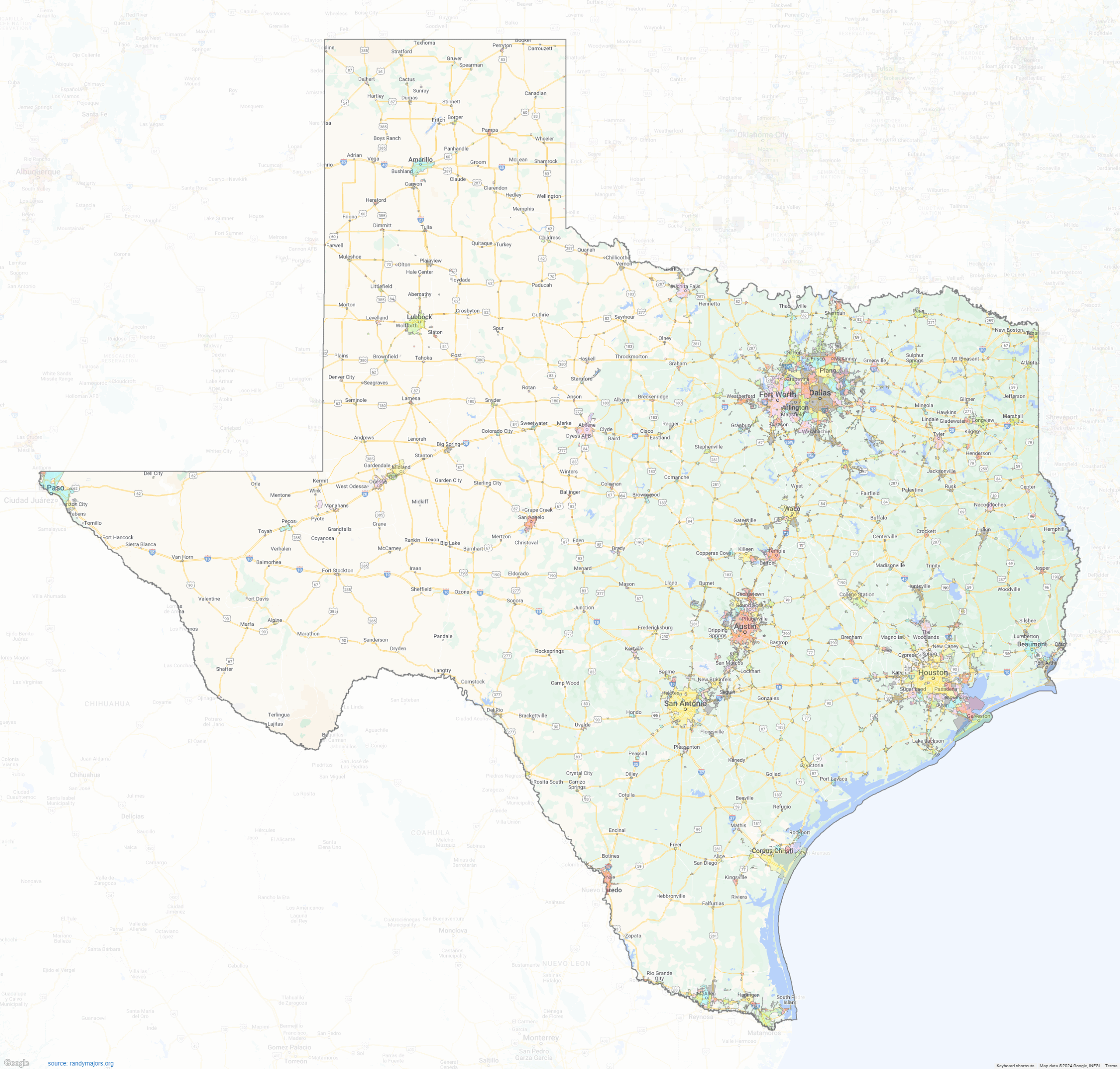 Texas City Limits Shown On Google Maps