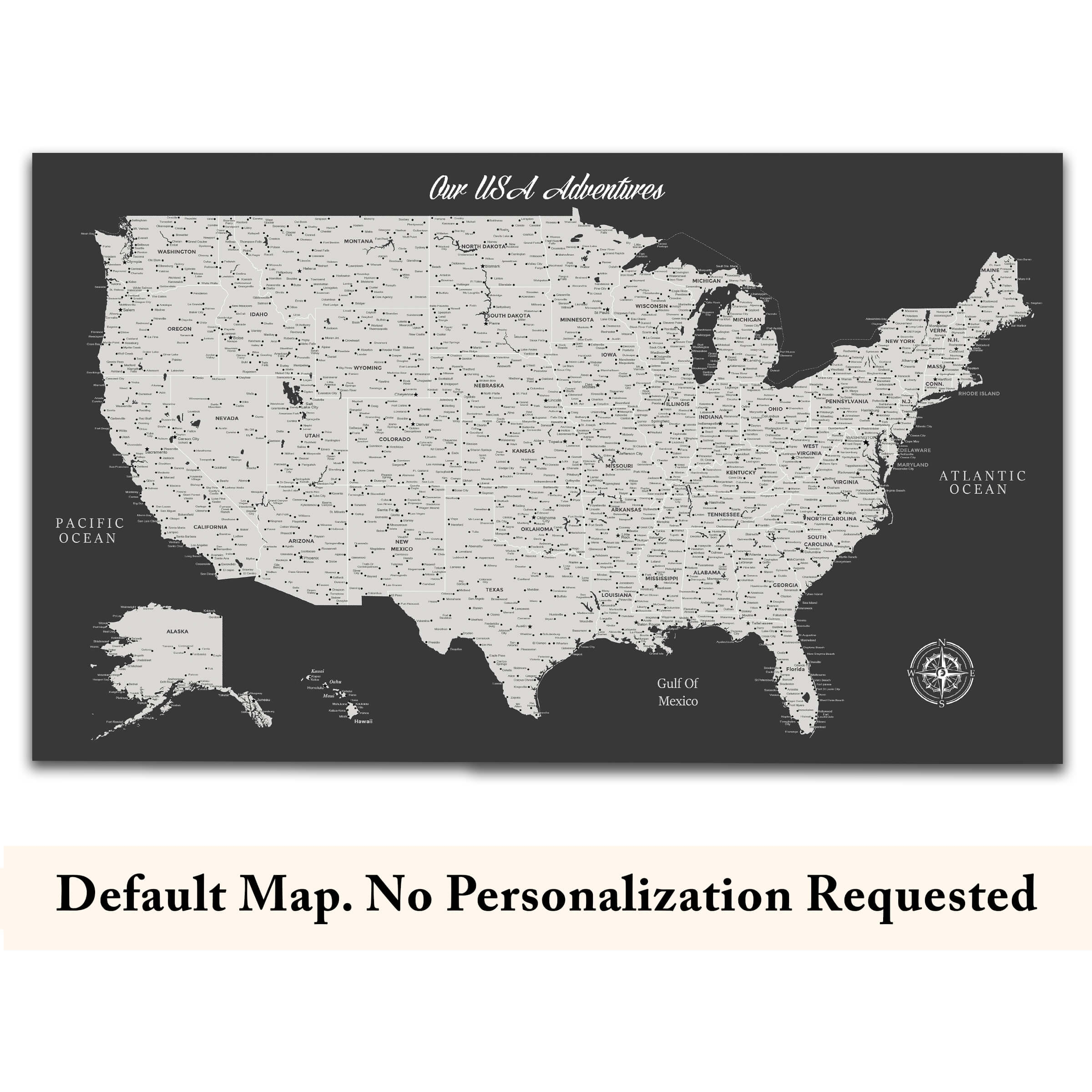 Dark Grey Push Pin USA Map Custom Political US Map Canvas Art Bay