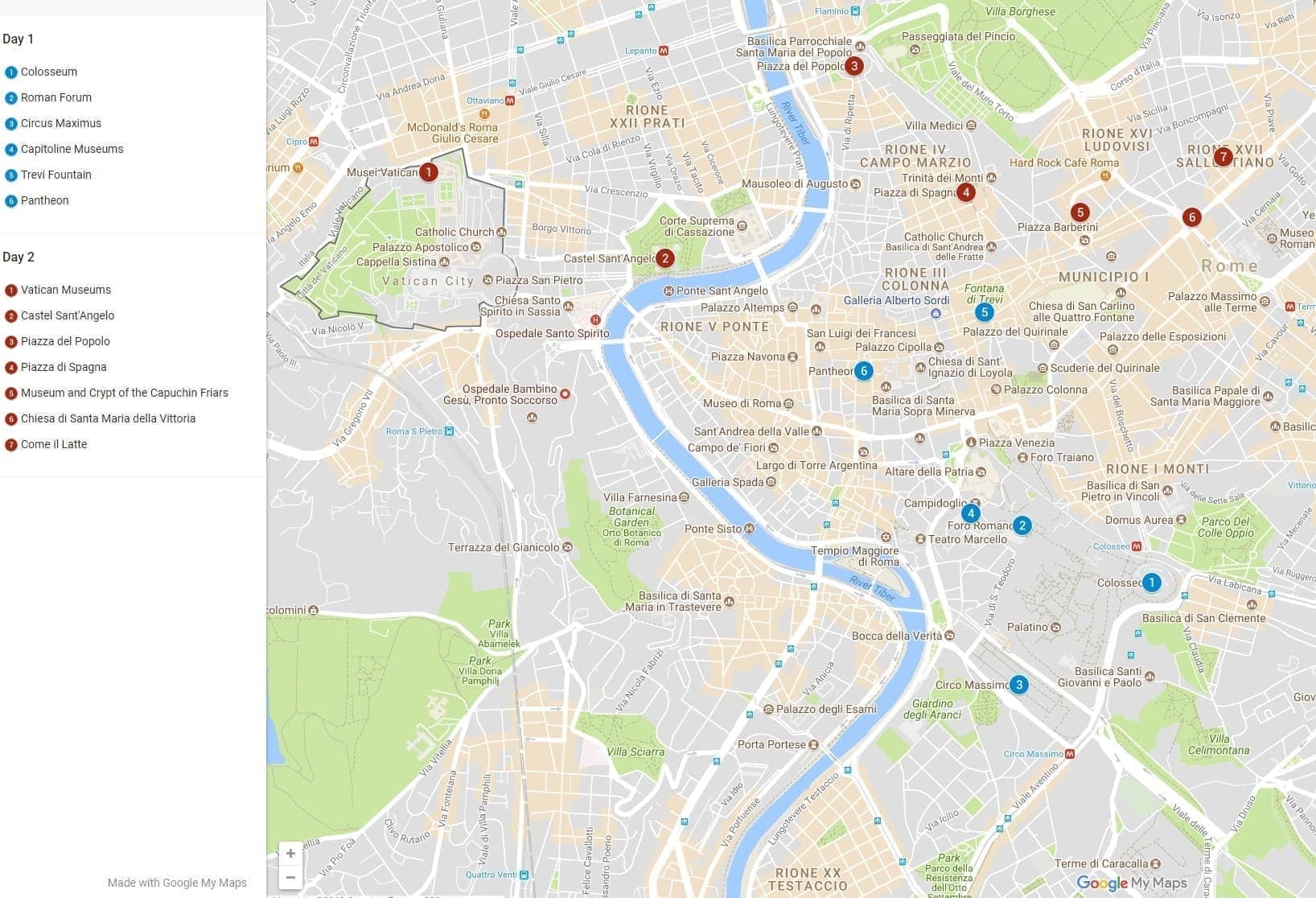One Day In Rome Walking Map With All The Highlights