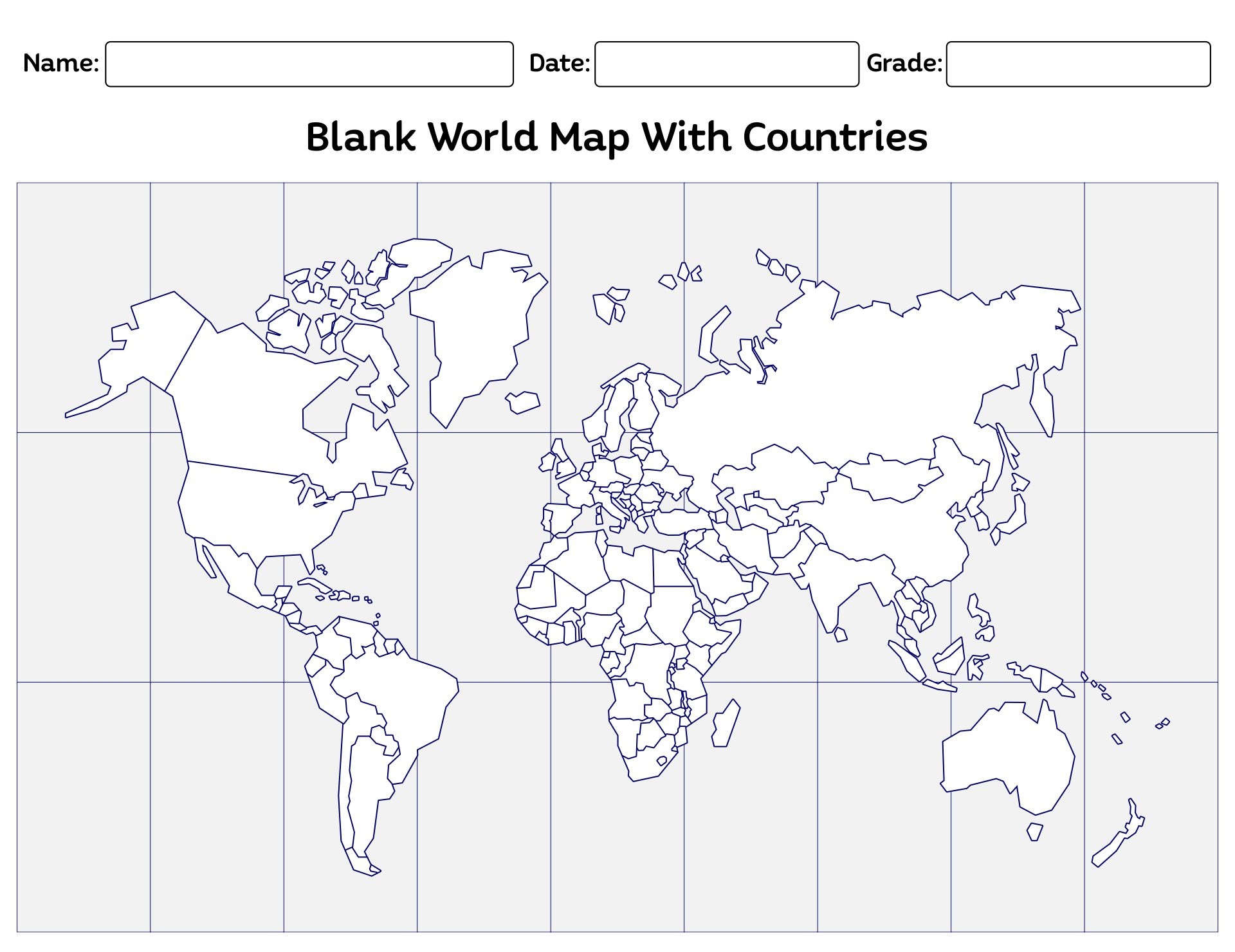 Blank World Maps With Grid 10 Free PDF Printables Printablee