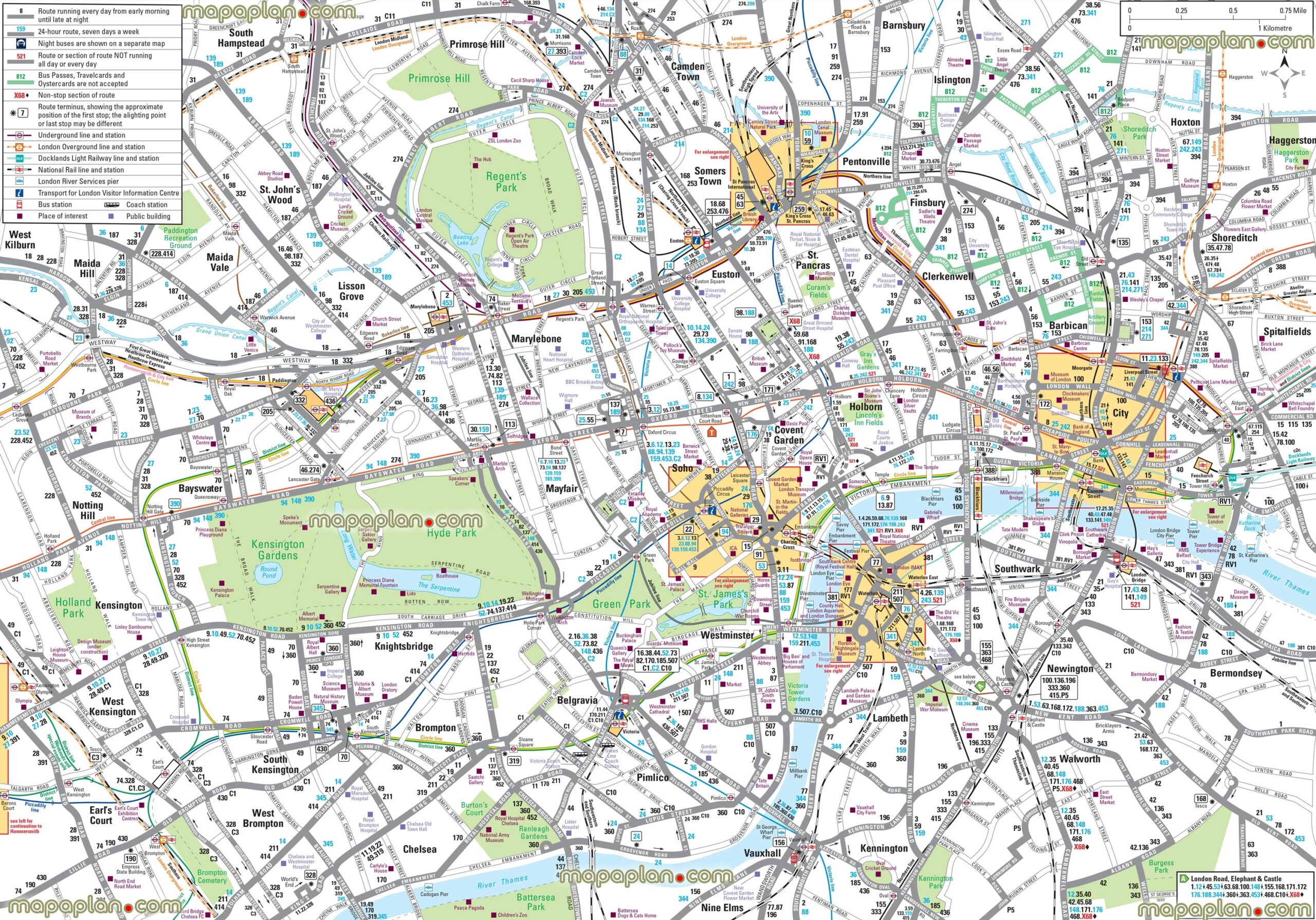 London Top Tourist Attractions Map Detailed Map Of Central London England Bus U0026 Tube Public Transportation Network A3 A4 Hd Printable Quality Large Scale Size
