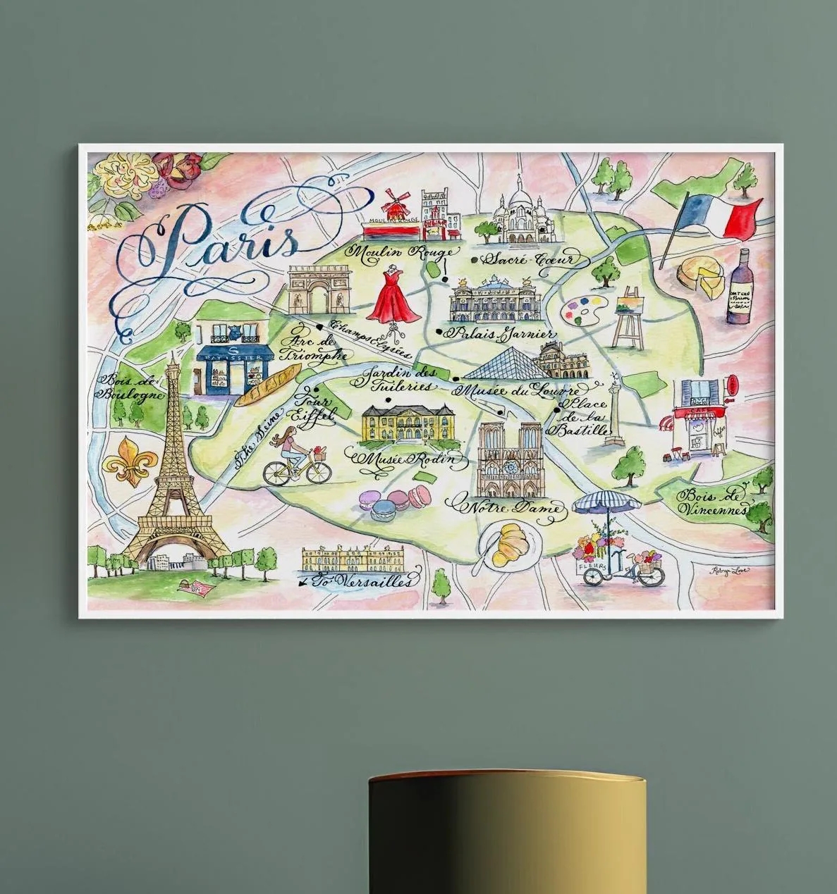 Paris France City Of Love Illustrated Travel Poster Favorite Map Tourist Highlights Etsy