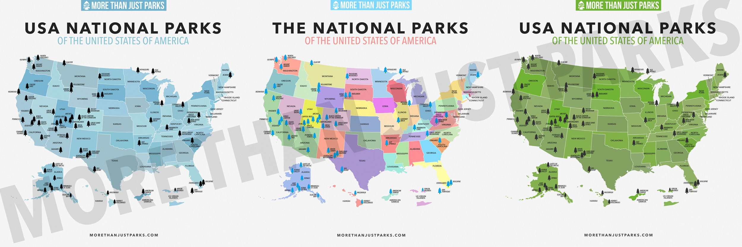 USA National Parks Map By MTJP Color Variants Download